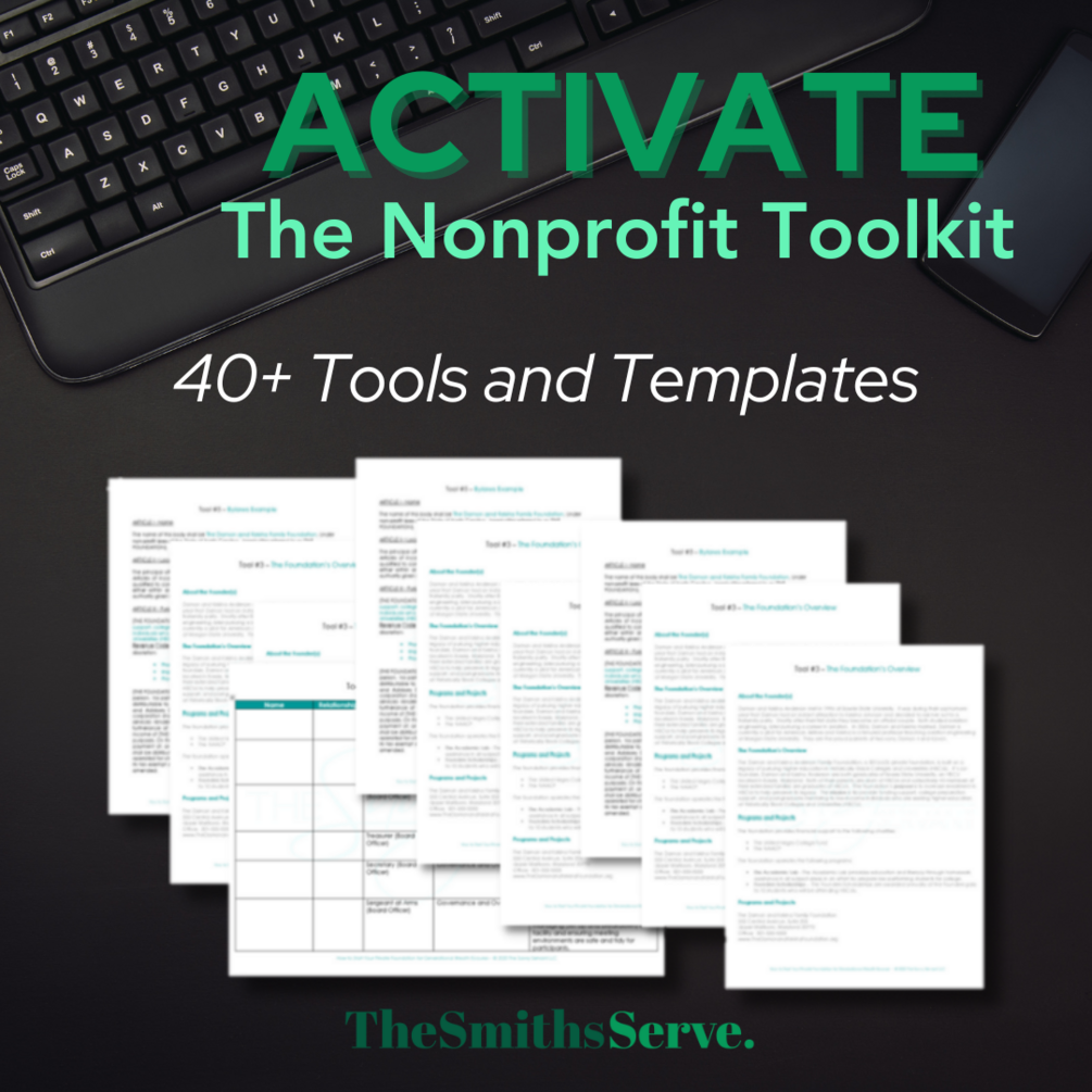 If you are ready to set up your nonprofit and need tools, Activate is for you!!  Activate includes the following tools that you can edit and brand to fit your organization. For FREE training on how to best use these tools go to www.TheSixFigureNonprofit.org.